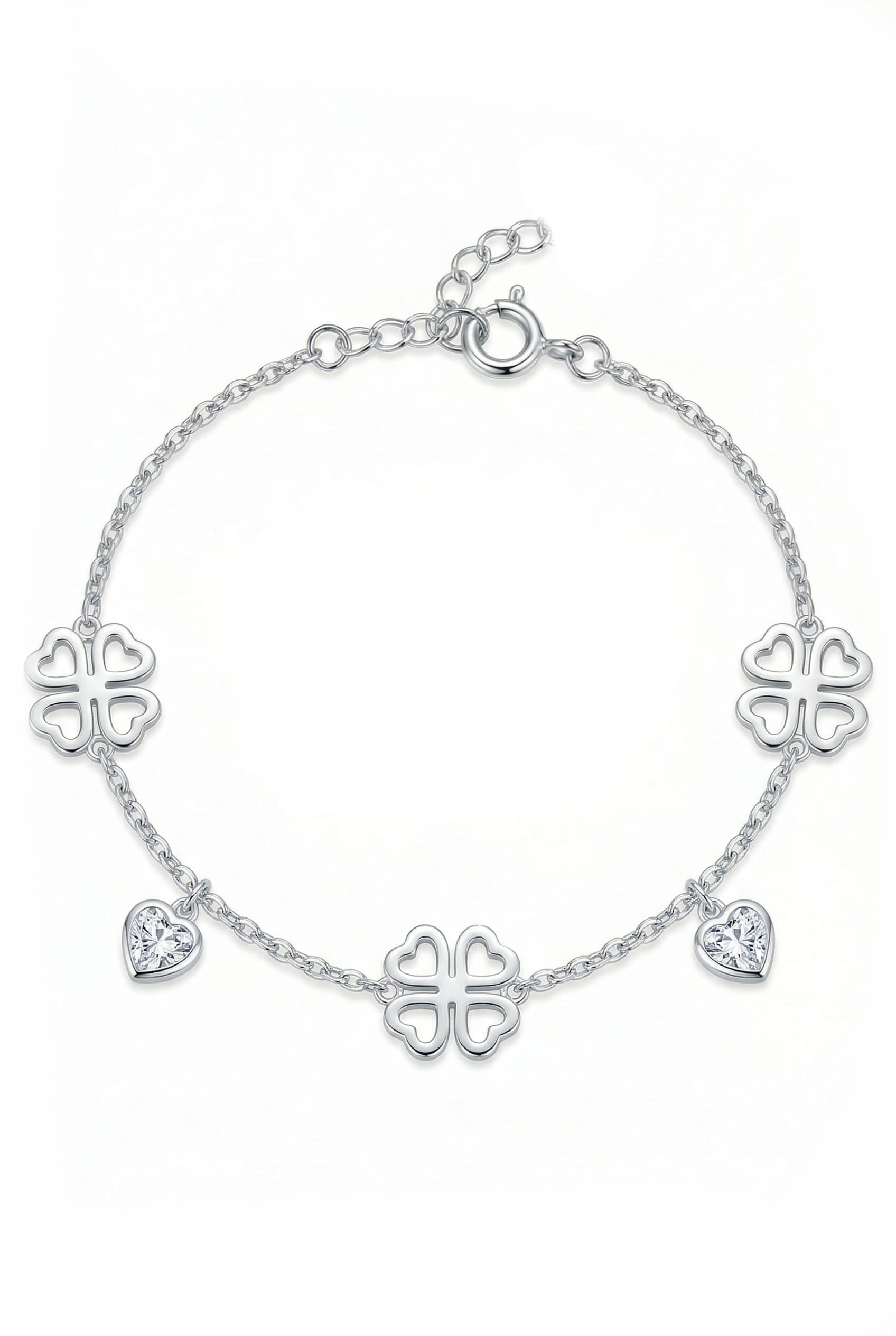 Silberarmband mit Kleeblättern und Herzen