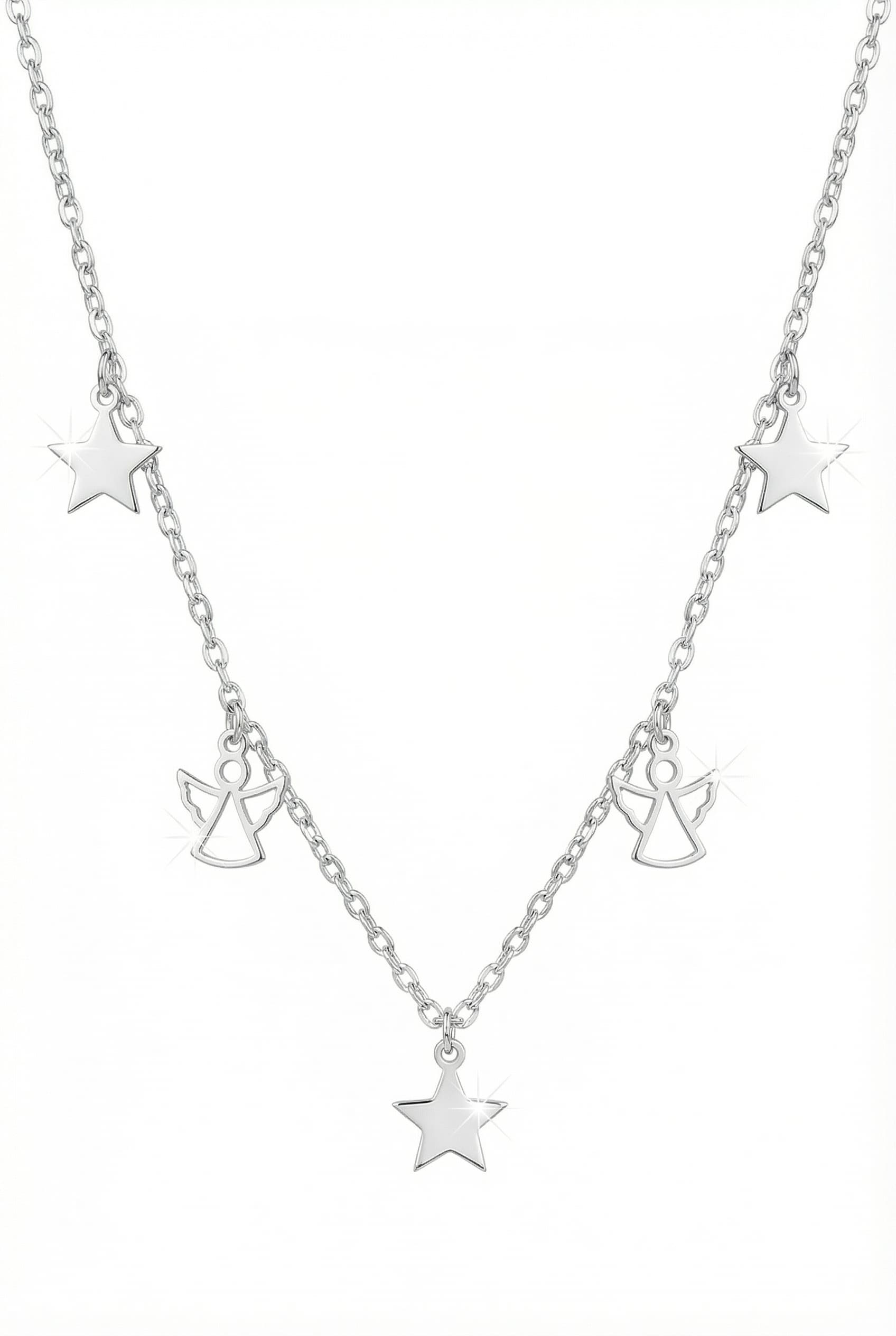 Silberne Halskette mit Engeln und Sternchen