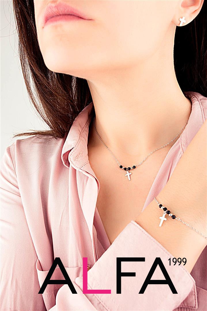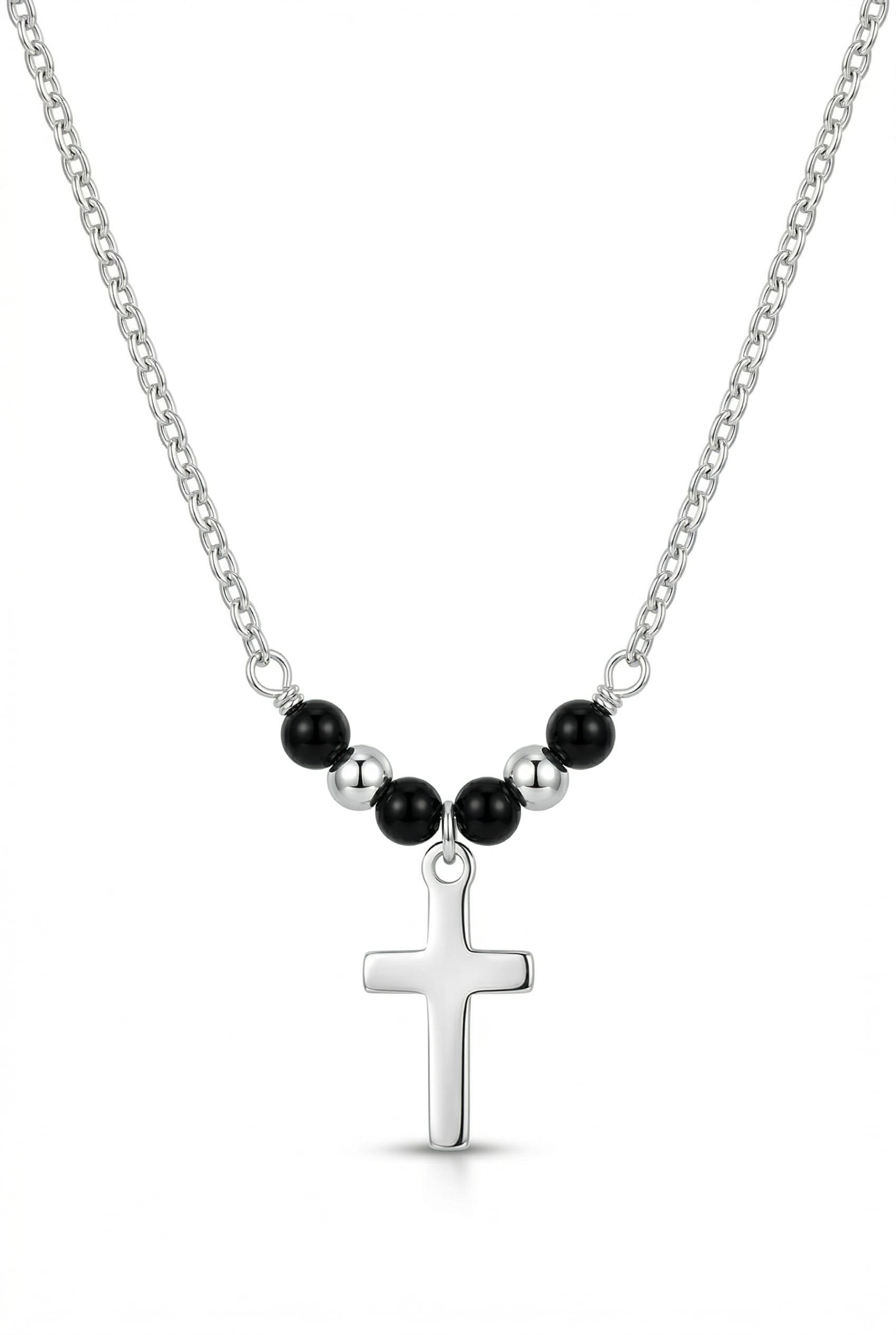 Silberne Kreuz-Halskette mit Onyx