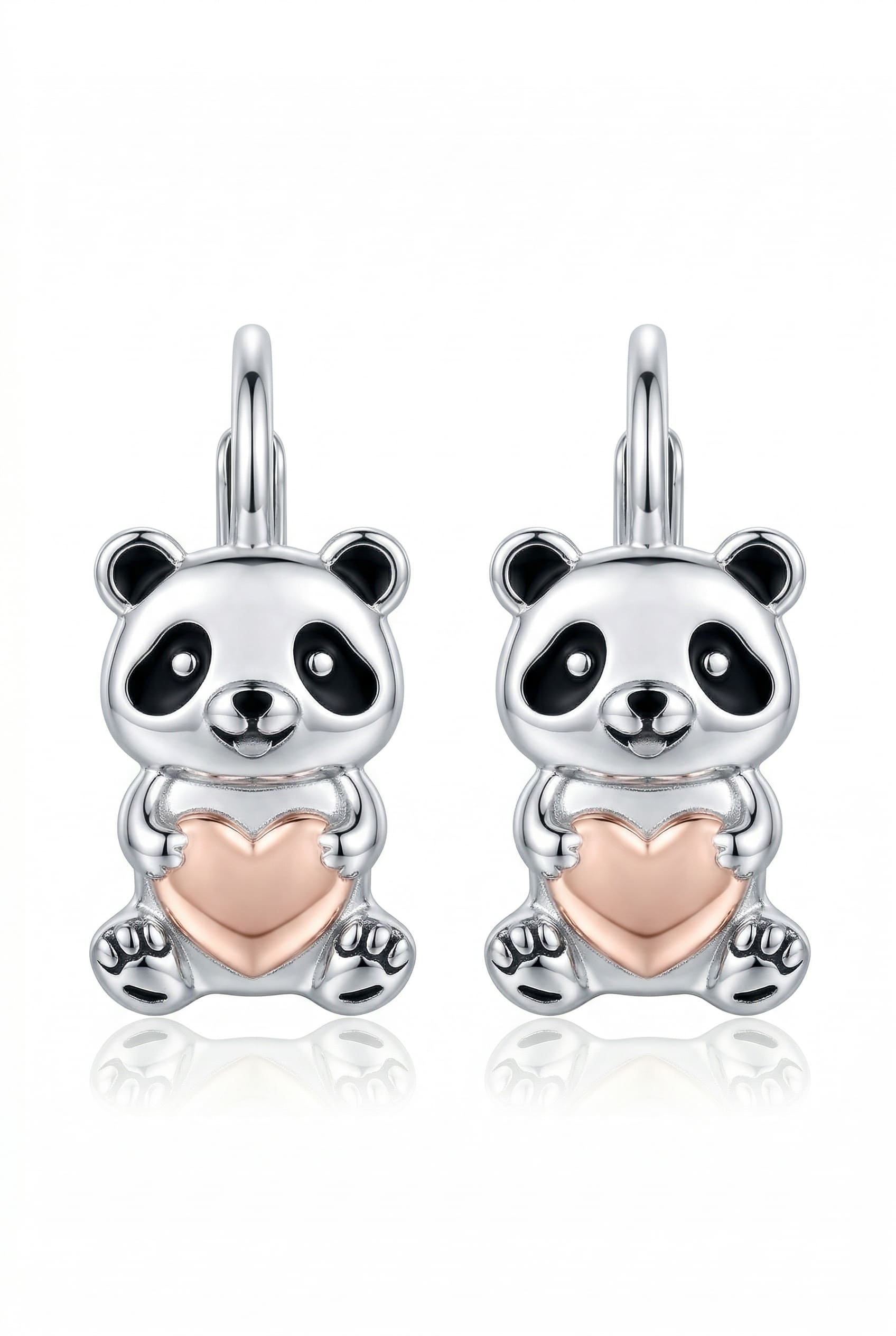 Silberne Panda-Ohrringe, Roségold
