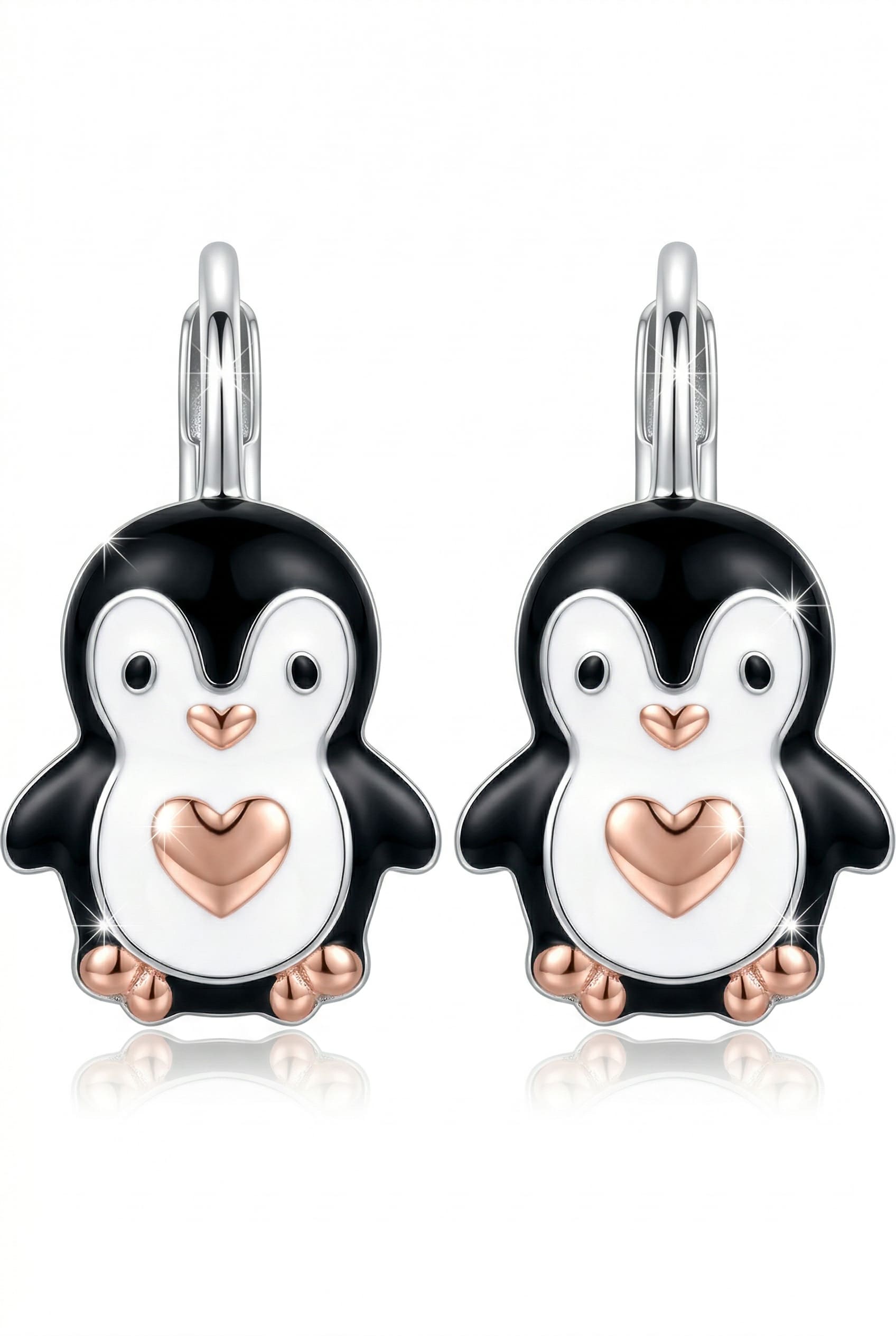 Silberne Pinguin-Ohrringe, Roségold