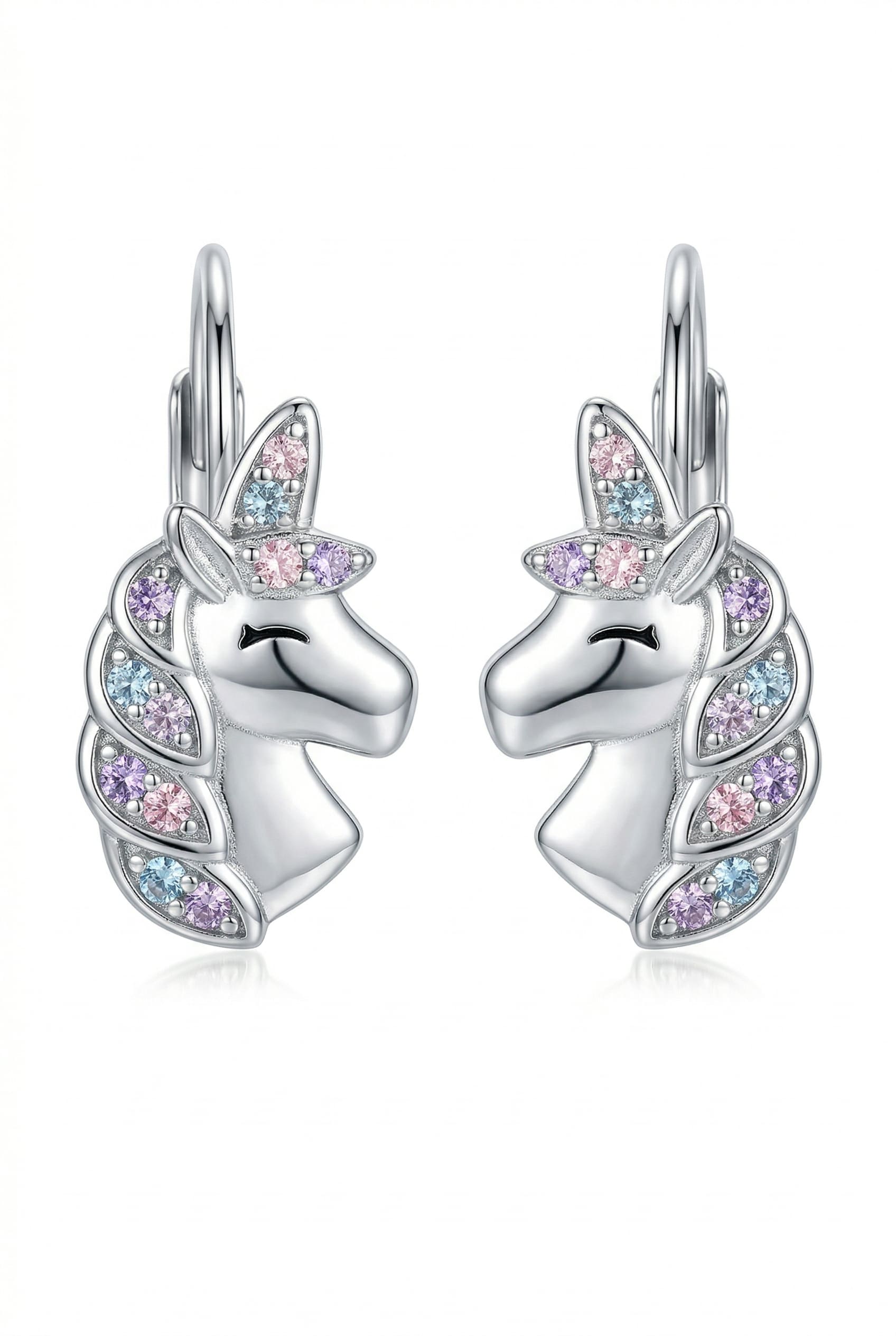 Srebrne kolczyki jednorożce z cyrkoniami