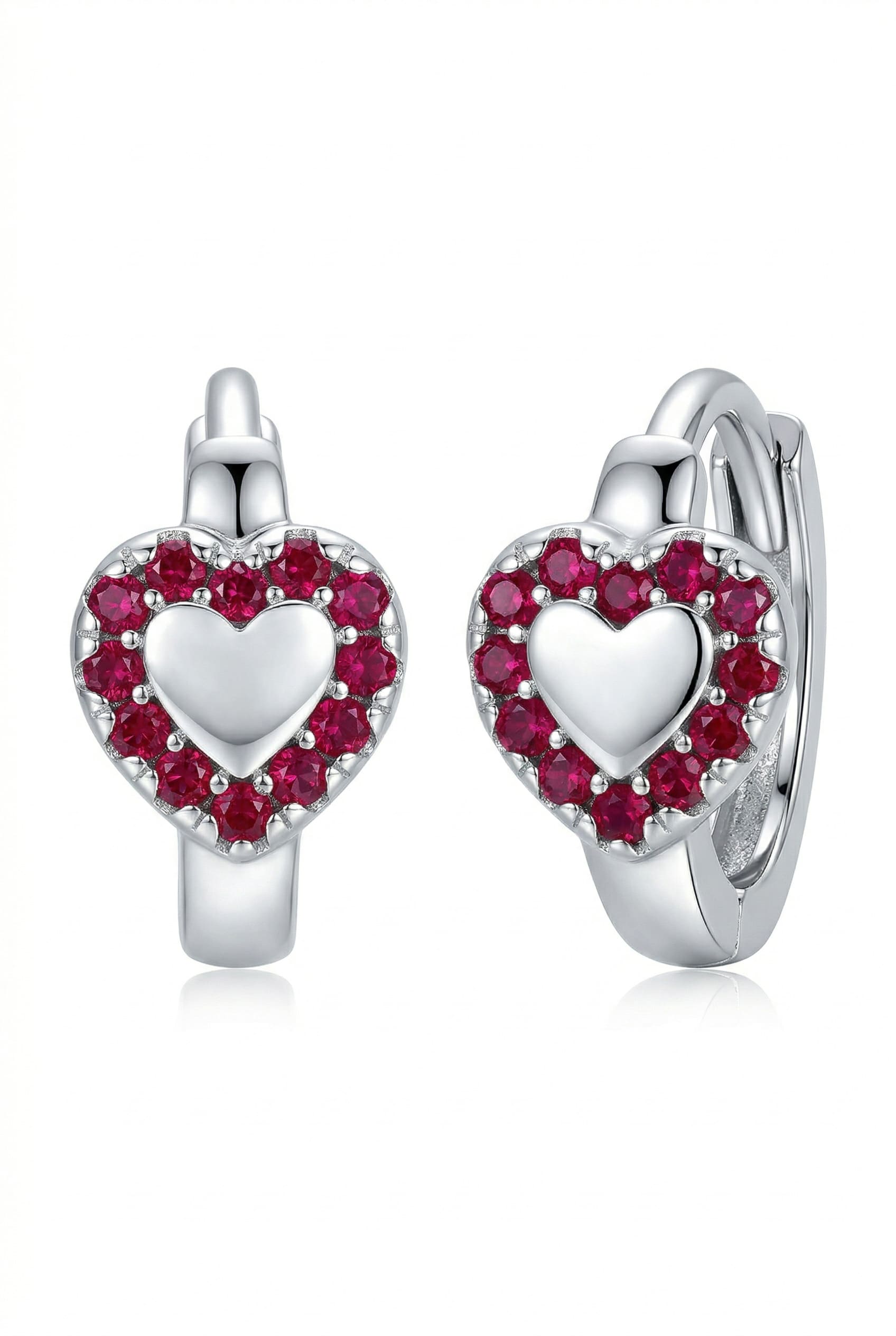 Srebrne kolczyki kółeczka z sercem, koła z serduszkami z cyrkoniami