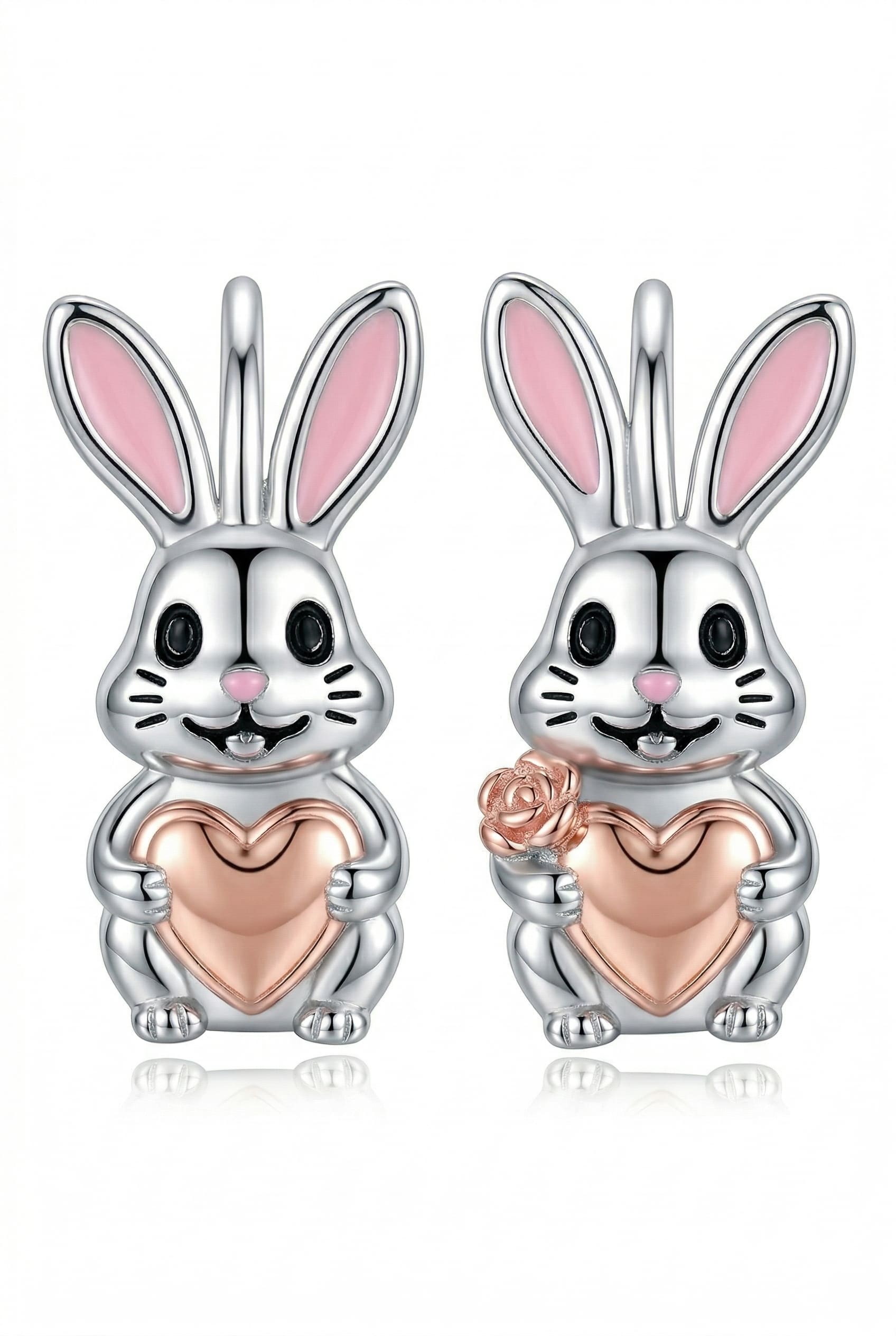 Srebrne kolczyki króliczki, zajączki , rose gold